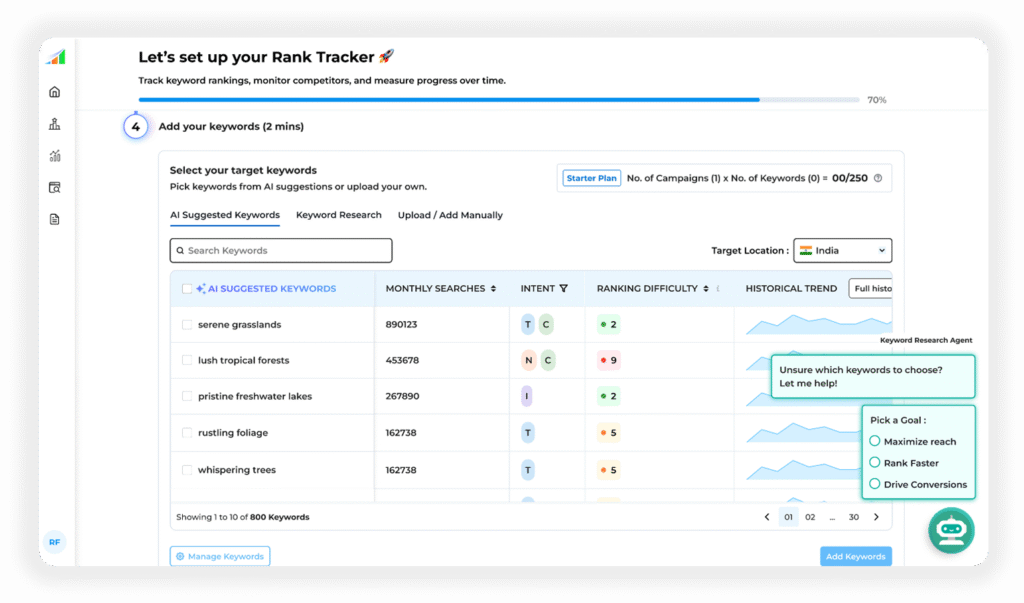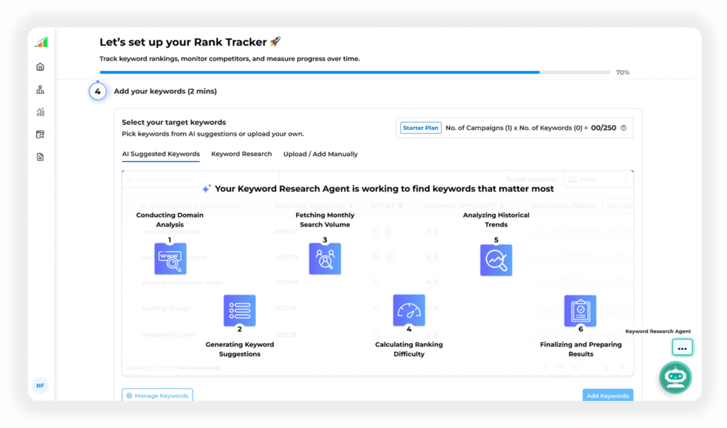 Our AI Agents automatically set up your domain, keywords, and tracking-no manual effort needed.