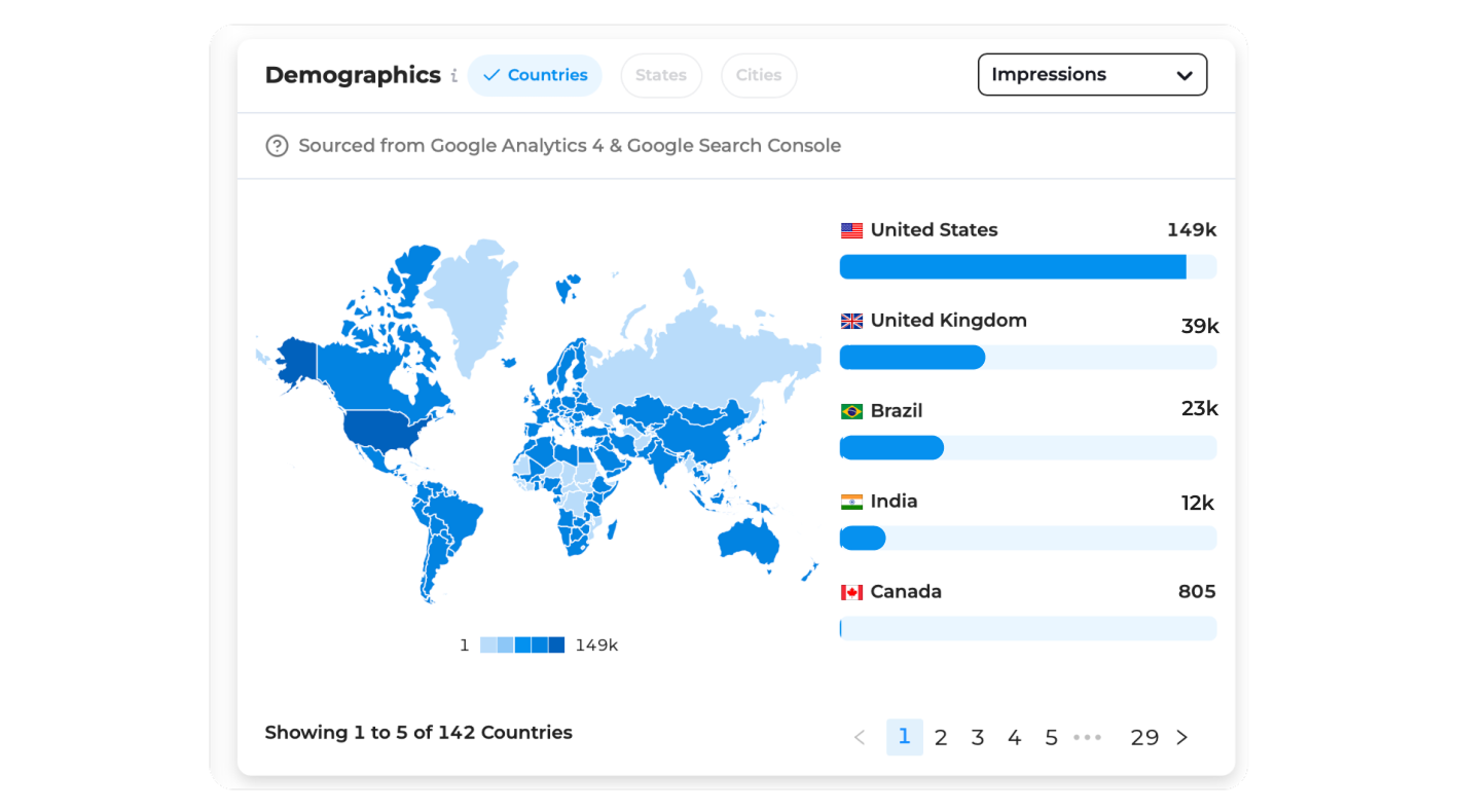 Why it matters: Pinpoint where your audience is coming from so you can focus your efforts on high-value regions and spot untapped opportunities.