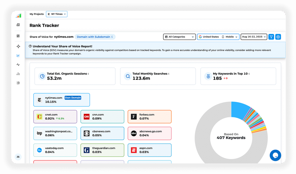 Measure your brand’s visibility compared to competitors for targeted keywords.