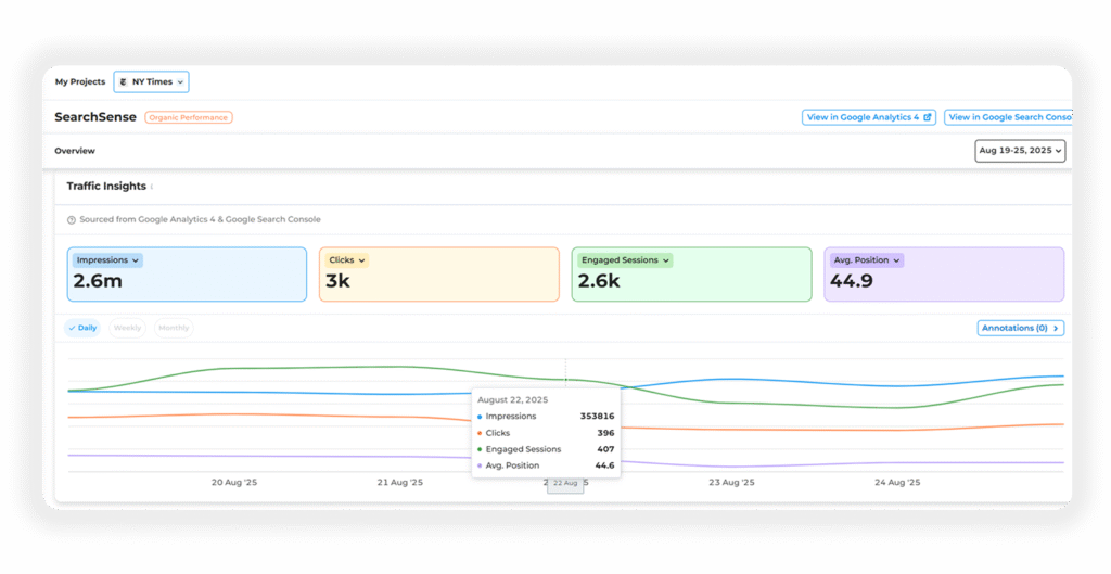 Why it matters: Eliminate tab-hopping. See traffic, rankings, and conversions together for faster, smarter decisions.