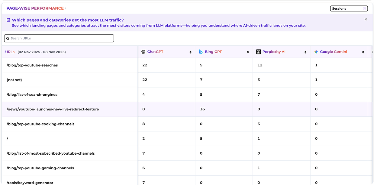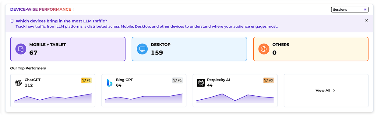 With LLM Traffic Insights, you can analyze various data points, including traffic sources, user behavior, engagement metrics, conversion rates, and more. This data helps you understand how visitors interact with your website and where improvements can be made to maximize performance.