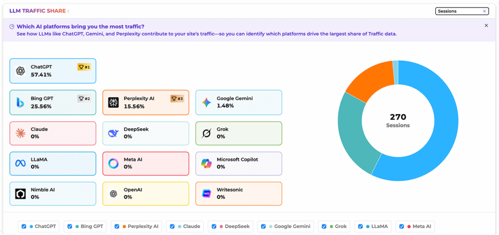 LLM Traffic Insights helps identify valuable traffic sources, enabling businesses to optimize them for better results and growth.